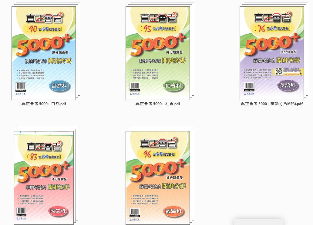 109年 國中會考 高升鑫 3600 A++ 歷屆試題彙整 五科合一 會考