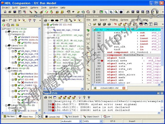 all syntax errors and warnings, which can easily be located in the HDL